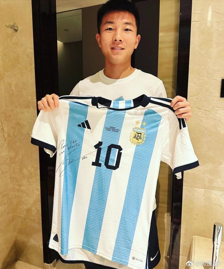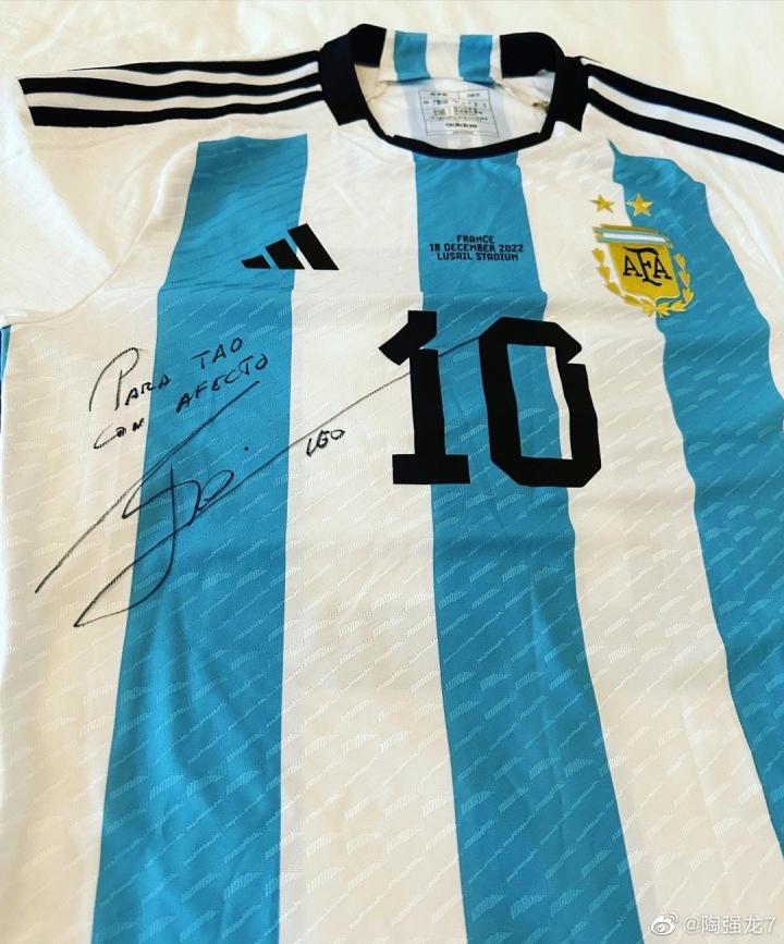 还是to签,陶强龙晒获得梅西签名球衣照片ETChalmers @懂球帝2023-06-17 14:14陶强龙在社交媒体晒出他获得梅西亲笔签名球衣的照片。日前,梅西来到北京参加与澳大利亚的友谊赛。今日,武汉三镇前锋陶强龙在社交媒体晒出他举着一件梅西签名的阿根廷10号球衣照片,球衣上面还写着:“Para TAO(给陶强龙)。”展开更多
