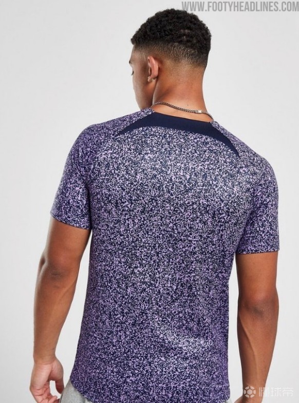目前看来,热刺23/24赛季的赛前热身服最终版本就是图中所示的样子:全身碎点状的纹路十分具有辨识度,衣服上的队徽logo则似乎采用了镭射效果,能完美融入在衣服的纹路当中。