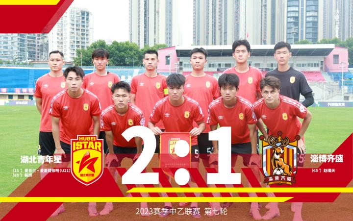 北京时间6月18日15:30,2023赛季中乙联赛(第一阶段)第七轮,湖北青年星坐镇主场新华路体育场对阵淄博齐盛,最终凭借麦吾兰-麦麦提依明与靳辉的进球,湖北青年星2-1战胜淄博齐盛,获中乙联赛赛季首场胜利,老将靳辉打开进球账户,05年龄段球员麦吾兰▪麦麦提依明收获赛季首球。