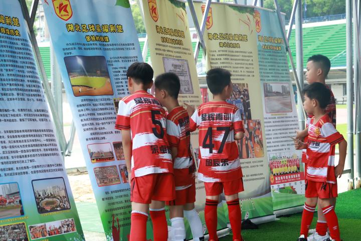为促进足球运动在幼儿和青少年中的普及与发展,提升湖北青年星足球俱乐部自身的主场氛围,在球员入场进行准备活动前半小时,新华路体育场西主席台旁跑道,星辉青训的小学员们进行了足球踢准和颠球等趣味游戏。为更好地感受足球的魅力与竞技精神,在游戏结束后,俱乐部安排小学员们参观新华路体育场了解湖北足球历史,并打卡入场门口湖北足球历史文化知识立牌,感受湖北拥有的深厚的足球传统,往日湖北足球的健儿们奋勇争先,为湖北足球谱写新篇章的场面仿佛历历在目。