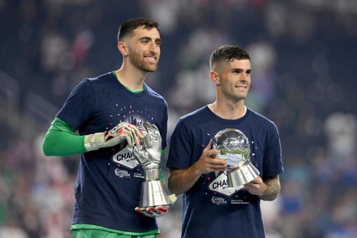 美国中北美国联夺冠,普利希奇当选最佳球员,特纳获最佳门将ETChalmers @懂球帝2023-06-19 12:10中北美国联决赛,美国2-0击败加拿大夺冠,完成两连冠,美国队长普利希奇当选赛事最佳球员,门将特纳则荣获赛事最佳门将称号。中北美国联决赛,美国凭借克里斯-理查兹和巴洛贡分别斩获国家队生涯处子球,以2-0击败加拿大,完成中北美国家联赛两连冠。美国队长普利希奇当选赛事最佳球员,美国门将特纳则当选赛事最佳门将,并领取奖杯。而此役送出两次助攻的雷纳则当选决赛全场最佳球员。展开更多