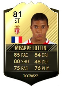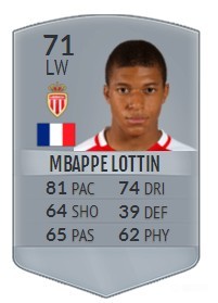 在FIFA17中,姆巴佩还只是一个“小妖”,银卡初始总评只有71,或许EA也没想到他会在这个赛季中爆发吧。