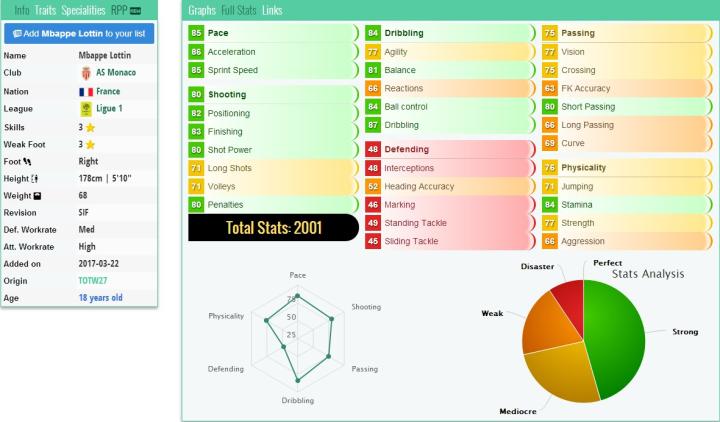 不过“二黑”后,姆巴佩的数据还是不错的。总评达到了81,可以算是突飞猛进了。让我们一起期待在未来几作中,姆巴佩会不会成为名副其实的“新亨利”。