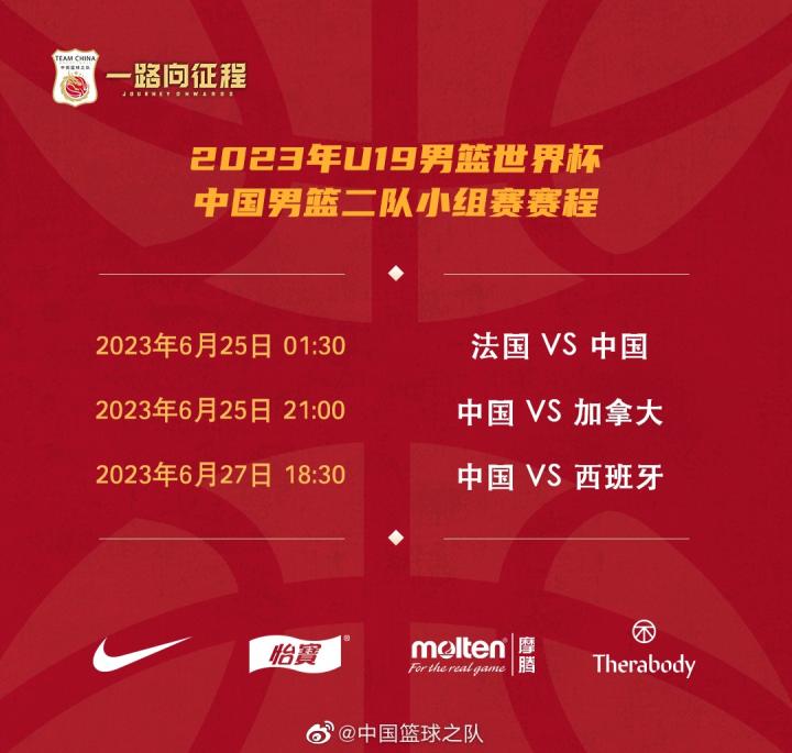2023年U19男篮世界杯将于2023年6月24日至7月2日在匈牙利举行。中国男篮二队将在北京时间6月25日凌晨1:30迎来首场小组赛,对手是法国队。