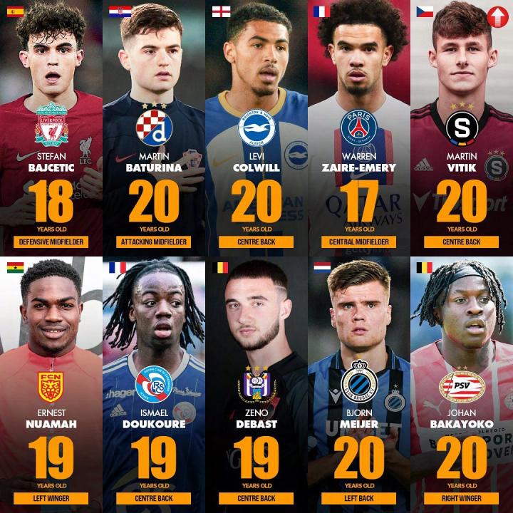 2023金童奖百人候选名单(姓名、俱乐部、年龄、国籍、位置、目前的金童系数)