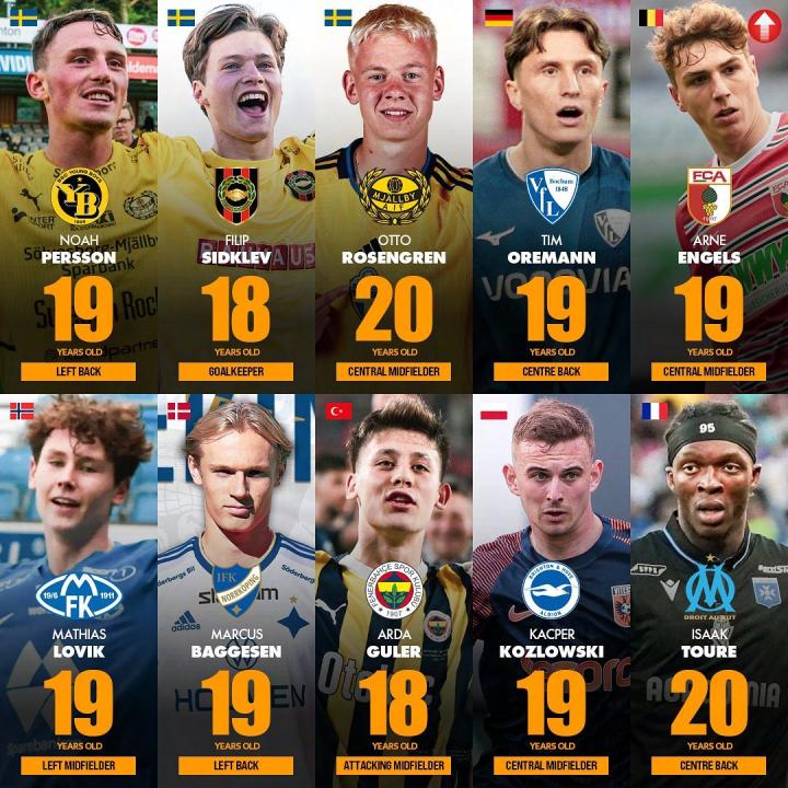 36、拉尔森 Hugo Larsson:马尔默,18岁,瑞典,中场,71.3