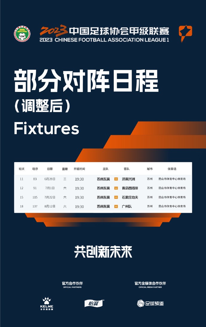官方:苏州东吴近四场主场比赛调整至昆山市体育中心进行luna16 @懂球帝2023-06-21 19:51据中甲联赛官方消息,因比赛场景所在区域举办大型活动,调整苏州东吴部分主场比赛场地,即苏州东吴近4场主场比赛调整至昆山市体育中心进行。以下为官方通告:2023中甲联赛比赛公告因比赛场地所在区域举办大型活动,经江苏苏州赛区、苏州东吴足球俱乐部共同申请,2023中甲联赛委员会研究决定,同意调整苏州东吴部分主场比赛场地,由苏州体育中心调整至昆山市体育中心体育场。比赛日期和比赛时间不变。调整后安排如下: 展开更多