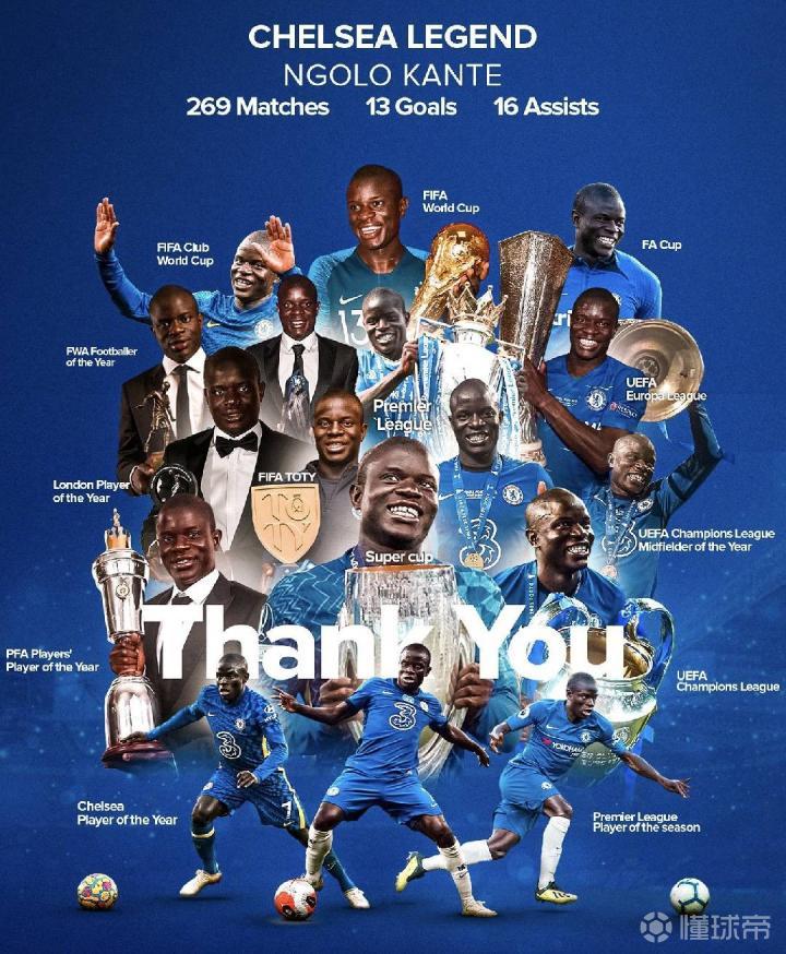 恩戈洛,你不必感谢切尔西,事实上,应该是我们感谢你才对。祝你未来好运,传奇。