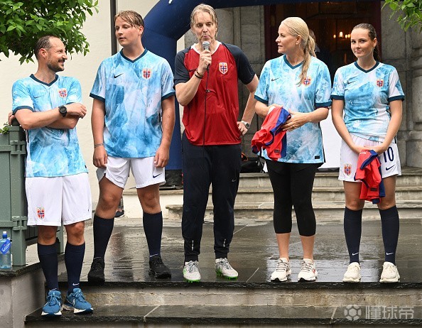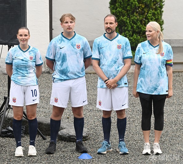 当地时间周三,挪威哈康王储、梅特-玛丽特王妃、英格丽德-亚历山德拉公主和马格努斯王子在斯考古姆的家门前参加了一年一度的足球友谊赛。