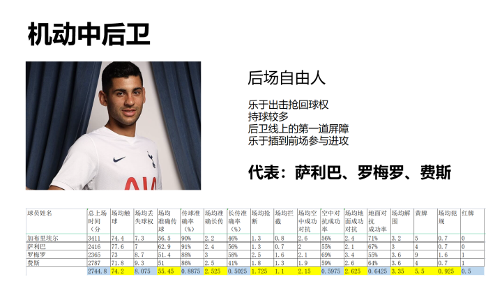 机动中后卫在场上往往是最亮眼的那个,他们积极铲抢、在防空和地面防守上施展三头六臂,只为在第一道防线上夺回球权,重新将攻势转回己方脚下。萨利巴、加布里埃尔、罗梅罗和费斯都是这样的球员。但对于一个不成熟的后防线而言,布置机动中后卫是具有挑战性的——如何解决中后卫频繁上抢后留下的空当?显然,上赛季的热刺没能解决这个问题