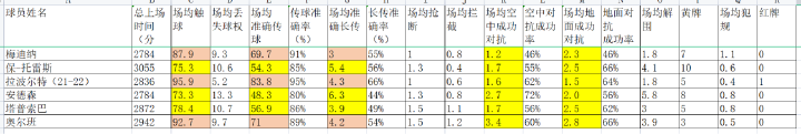 以下是这六名球员的数据,可供热刺球迷进行参考