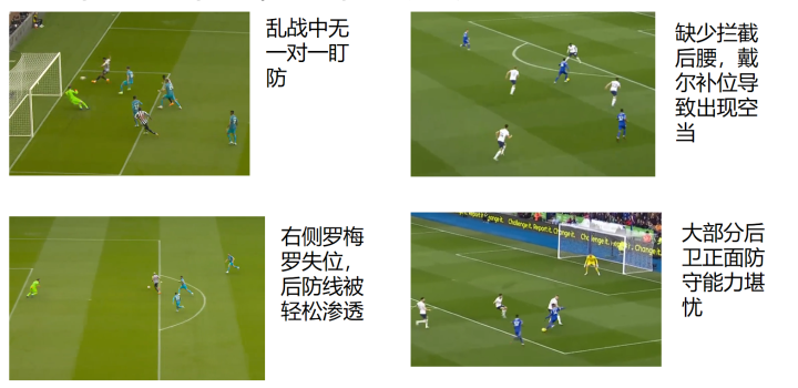 从第四到第八,热刺的后防正在面临者前所未有的危机。上个赛季中,热刺暴露的问题包括但不止于乱战中无人一对一盯防、机动中卫频繁上抢无人补位导致后防线被轻松渗透,缺少拦截后腰,拖后后卫上抢导致出现后场空当,大部分后卫正面防守能力堪忧。这不仅仅是体系问题,更是缺少后防布置、部分后防球员能力不过关的集中体现。