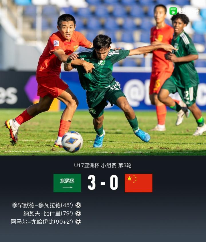 【U17亚洲杯国少0-3沙特一平两负小组垫底出局,蒯纪闻中楣】