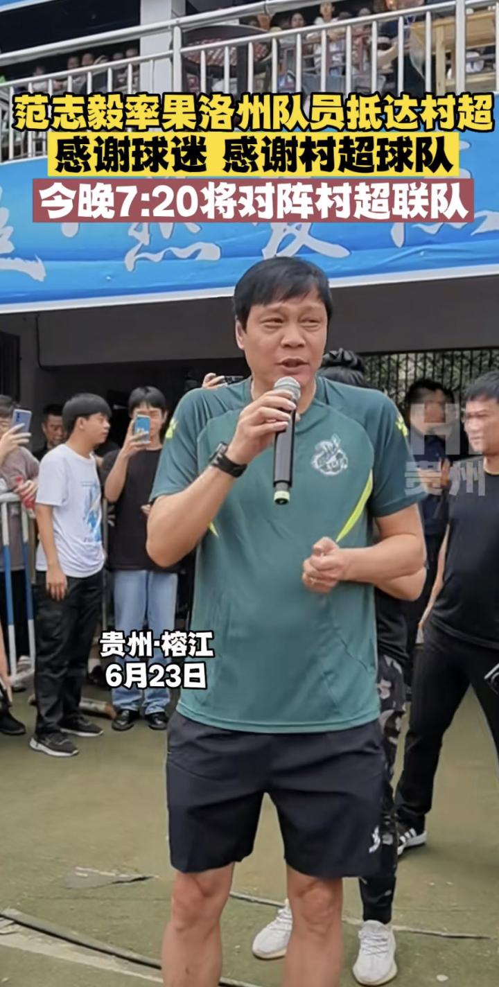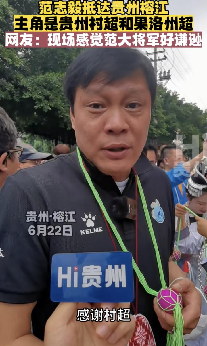 范志毅范大将军抵达贵州榕江,并率领球队踢比赛范志...中国足球观察新闻 @懂球帝2023-06-23 23:06范志毅范大将军抵达贵州榕江,并率领球队踢比赛 范志毅范大将军抵达贵州榕江,体验了贵州榕江各种民族风情。范志毅说“感谢村超、州超的球队,我也来学习学习,我也来看看,感谢这些球迷朋友们,我只不过是来助威的,主角呢还是村超和州超。”范志毅率果洛州在6月23日晚上7:20对战村超联队。展开更多