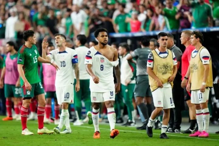 美国队在这场半决赛中以3比0战胜了墨西哥,但双方均以9人结束比赛。