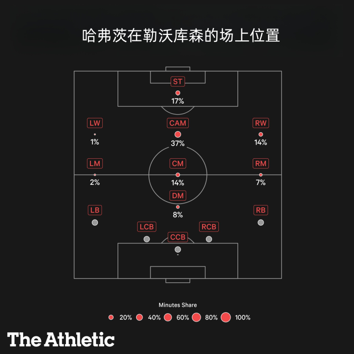 首先,是他在勒沃库森效力的四个赛季在联赛中的出场位置比重: