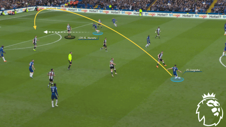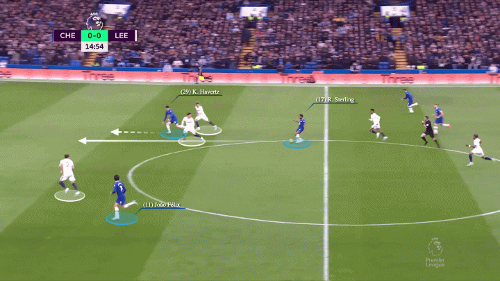 哈弗茨的跑动既服务了自己,又造福了他人,创造了大量的空间。