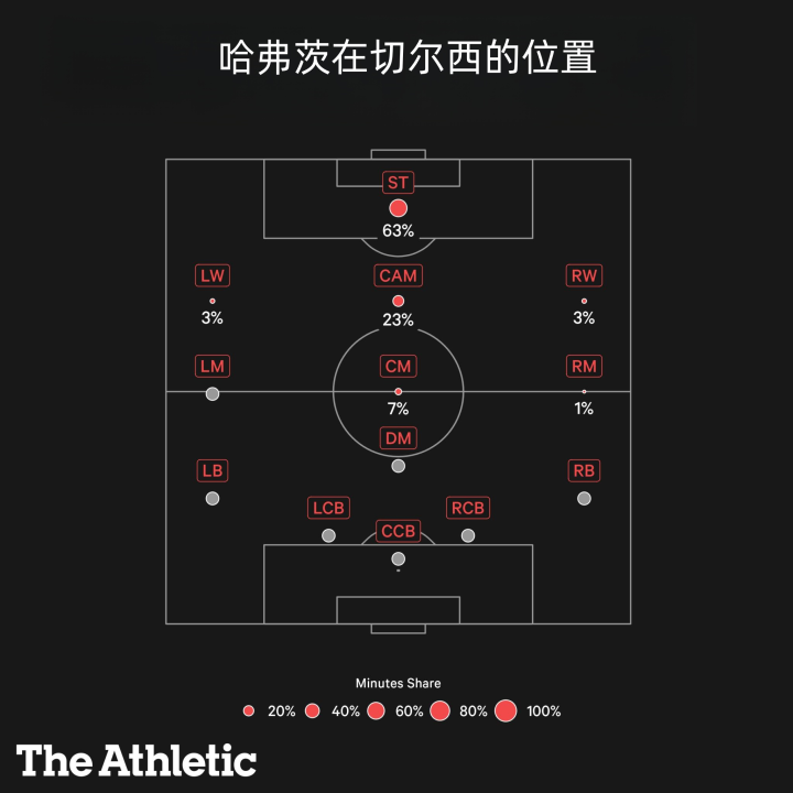 但在更深的位置上,哈弗茨可以发挥他跑动上的优势。