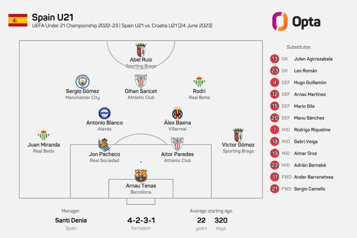 本场比赛,西班牙U21排出了这样的首发阵容。
