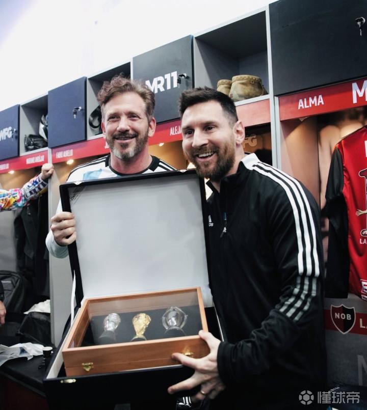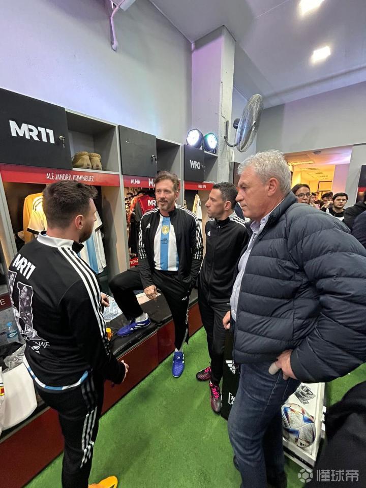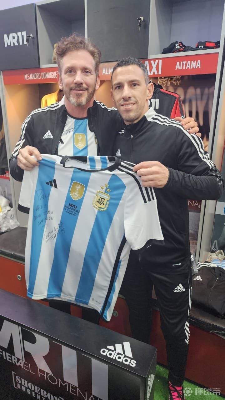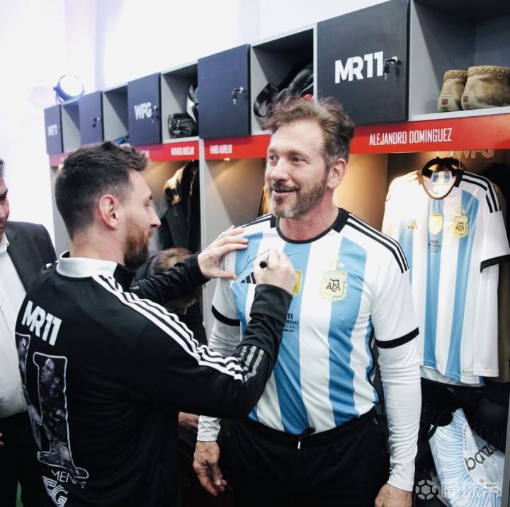 而梅西则为Alejandro Domínguez在他的球衣上签名。