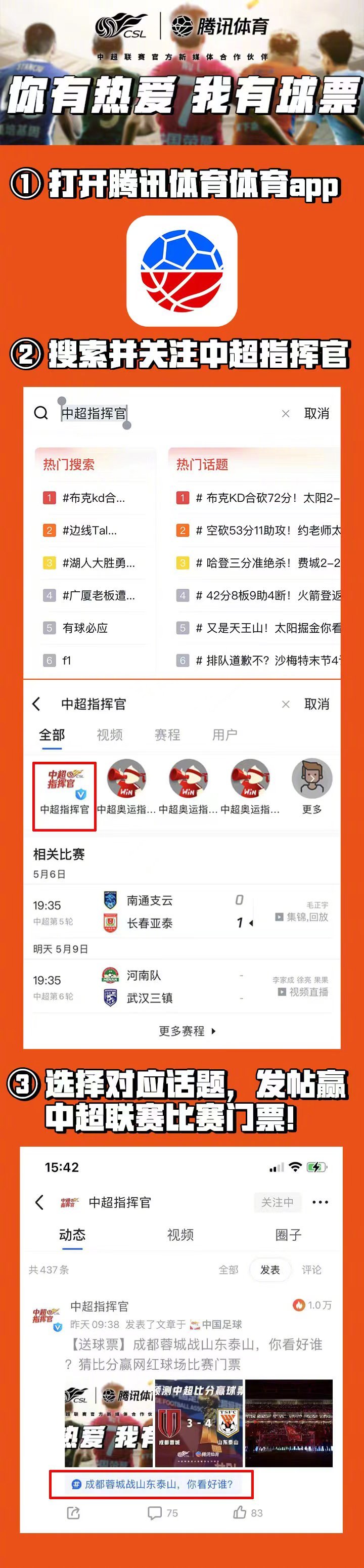 #你有热爱,我有球票##山东泰山[超话]# 中超...山东泰山足球俱乐部 @懂球帝2023-06-26 10:20#你有热爱,我有球票##山东泰山[超话]# 中超归来,我们济南奥体见!腾讯体育社区为大家准备了中超第13轮山东泰山VS长春亚泰的比赛球票,发帖聊聊“中超夏日观赛攻略”,揪5名幸运球迷送票,每人2张!点击这里发帖参与>>http://t.cn/A6pR5oou展开更多