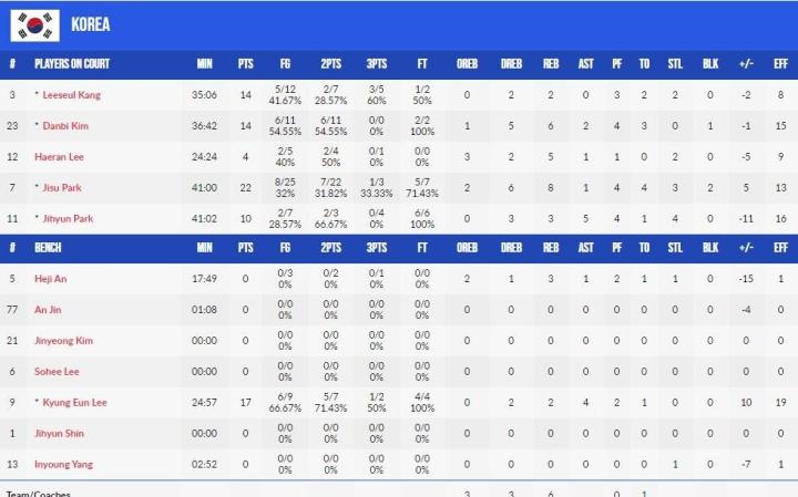 韩国女篮:朴智贤、朴智秀、姜利瑟、金丹菲、李京恩