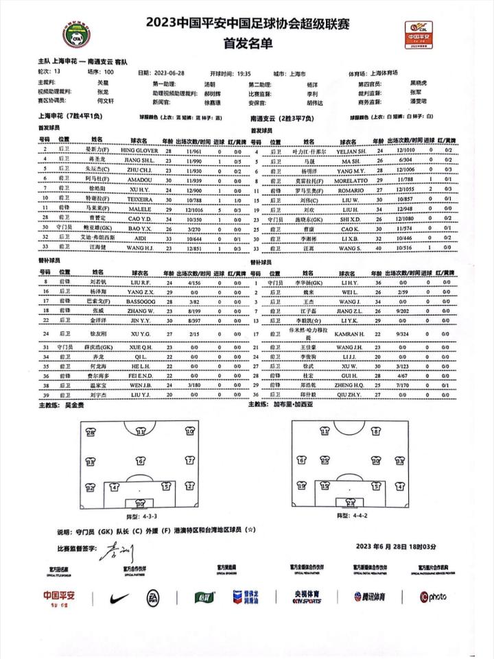 #启程2023##中超联赛# 2023中超联赛第...上海申花足球俱乐部 @懂球帝2023-06-28 18:27#启程2023##中超联赛# 2023中超联赛第13轮 上海申花 vs 南通支云 首发名单展开更多
