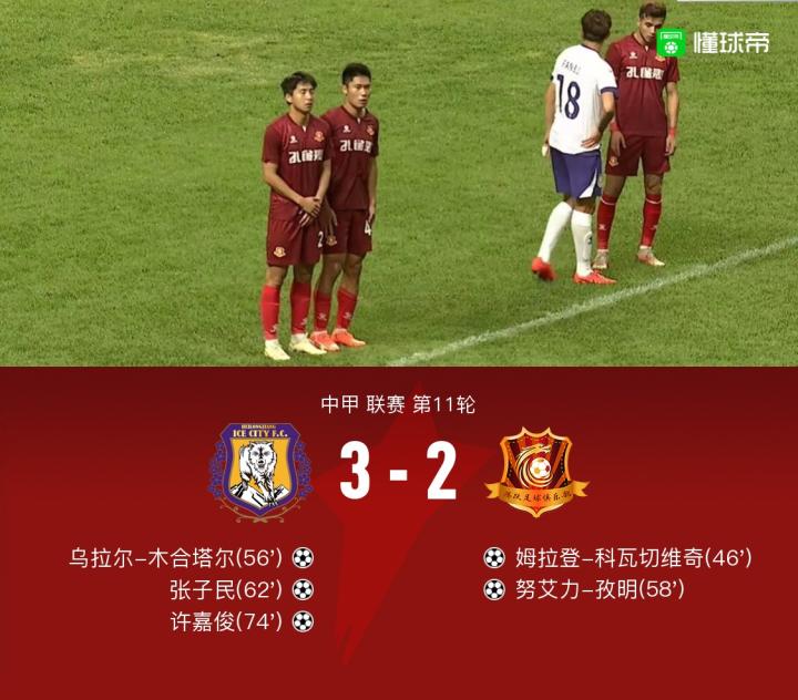 黑龙江冰城首发:23-叶尔杰提-叶尔扎提、40-维迪奇、15-张一轩(U21)、2-张昱杰(U21)、6-艾合买提(90+2'20-张培鸣)、18-范博健(90+2'14-王锦鹏(U21))、33-张子民(83'3-李波洋)、28-邵帅、10-乌拉尔-木合、11-埃里克斯、29-许嘉俊(80'21-艾沙江)