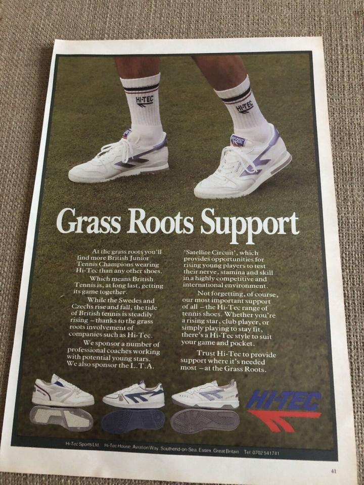 今天我们来介绍两个相对冷门的英国足球鞋品牌,第一个品牌目前还存活着,只不过已经不涉足足球领域,在户外领域应该还有一席之地。hi-tec,意思是高科技,国内叫海泰客。这个品牌历史不算悠久,和nike是同辈,诞生于1974年,是一位荷兰运动爱好者在英国开设的公司。这个公司的发源地是埃塞克斯郡Shoeburyness,这个地名非常有意思,可以翻译叫舒伯里内斯,也可以翻译成鞋城,应该是一个鞋类生产作坊的集散地。hi-tec的第一款产品是Squash的徒步鞋,采用帆布面料和硫化橡胶鞋底,因为没有使用真皮材料,受到了很多环保人士的追捧,据说全球销量1800万双。之后他们又推出网球鞋,南非总统曼德拉也曾经使用过hi-tec的网球鞋。