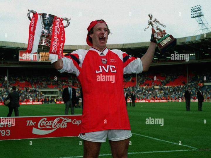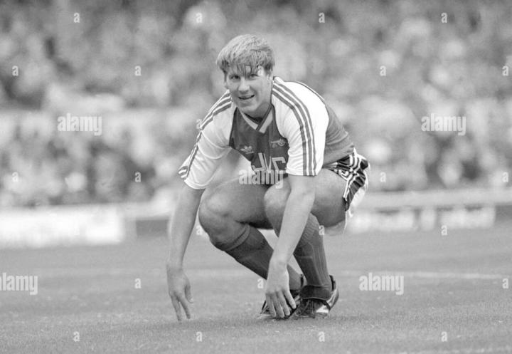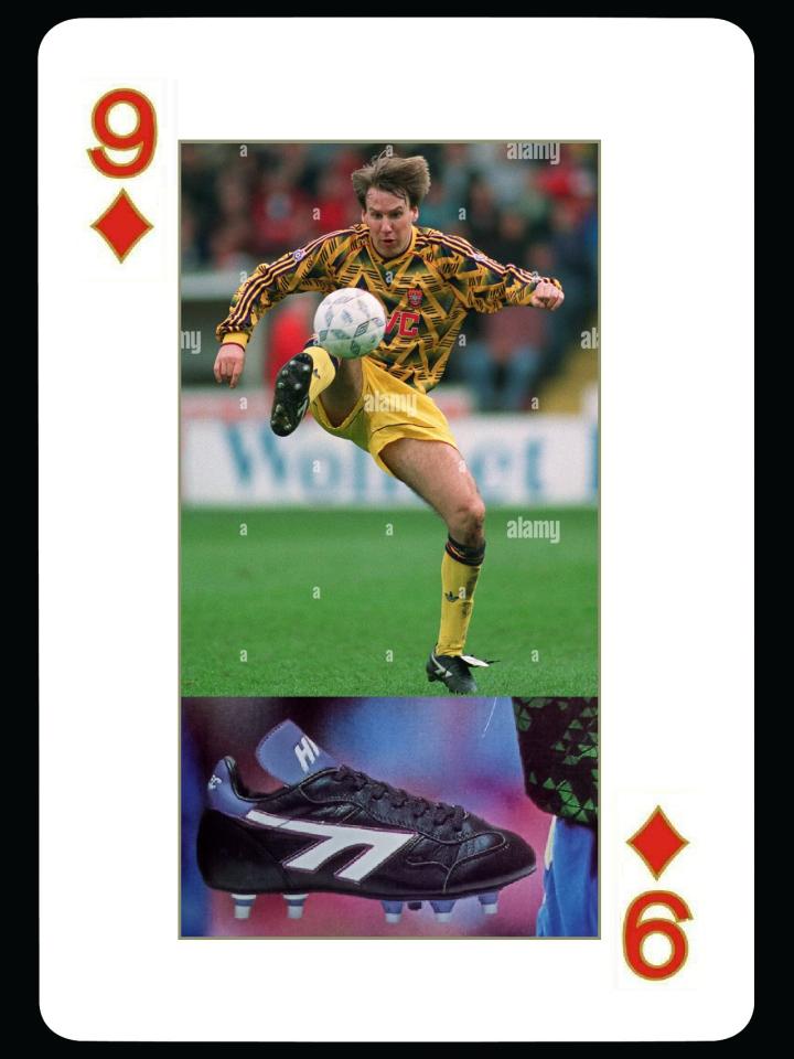 不过在英国生产运动鞋的公司,不涉足下足球鞋领域约等于到兰州没吃牛肉拉面。所以在1986年世界杯前,hi-tec也开始生产足球鞋,他们的首位代言人是刚刚从阿斯顿维拉转会的利物浦的中场大将麦克马洪。麦克马洪是1990年世界杯英格兰队的成员,当时是英格兰数得上的头牌后腰。但是对于我们这个年龄的球迷来说,他的辈分有点高。下面这位球星我们可能更加熟悉,阿森纳队的天才球员保罗默森。