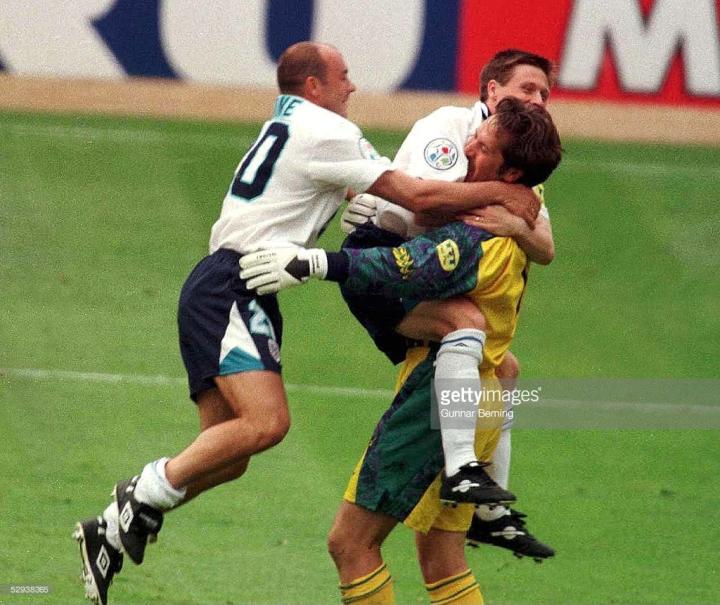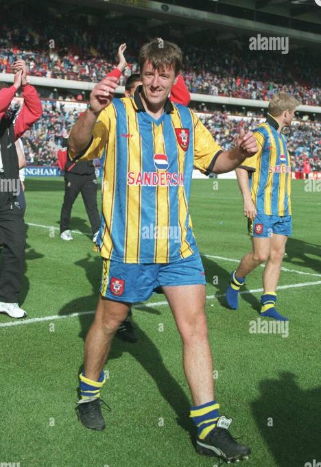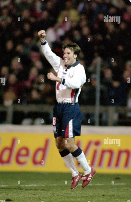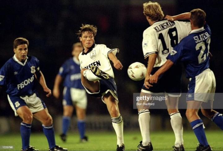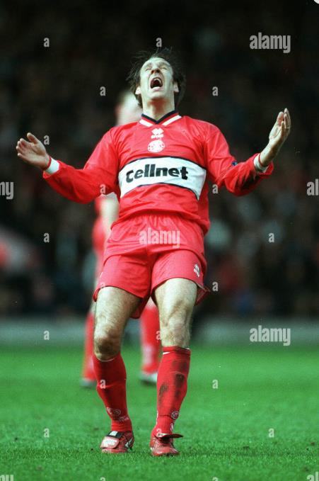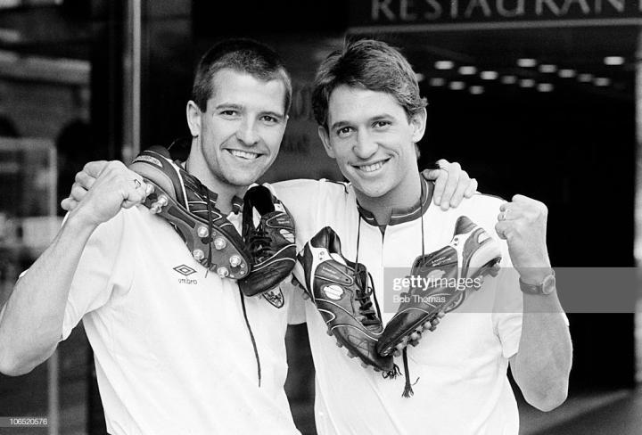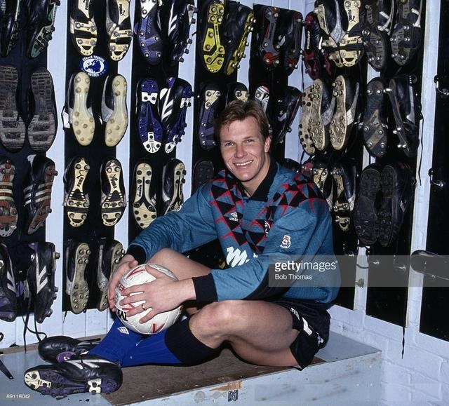 保罗默森相信很多阿森纳球迷都认识,他是土生土长的伦敦人,阿森纳青训出品,18岁进入一线队,到88-89赛季成为枪手主力,hi-tec也是在此时和默森签约,下面这双紫色鞋舌的球鞋,是1990年世界杯前发布的kings cup一代。默森出道时踢前锋,能力毋庸置疑,技术出众而且充满想象力,所以后来被教练改造成了前腰。他帮助阿森纳两次获得联赛冠军,并且成为英格兰国脚。但是在成名后,他和队长亚当斯一样,成为了英超著名的酒鬼,酗酒让他状态下滑,并且因此和俱乐部产生了矛盾,虽然在经过戒酒治疗后状态有所回升。但温格来到阿森纳后,还是将保罗默森送到了当时降级的米堡。没想到默森在米堡依旧表现出色,帮助球队杀回英超,并再次入选英格兰队。当时hi-tec还给默森定制了红色球鞋,可以说是风光无限。