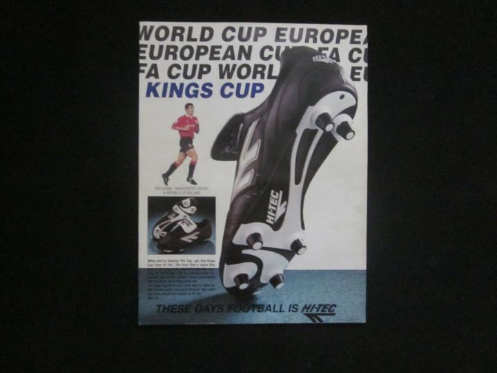 默森退役后成为了足球评论员,他最大的爱好就是黑温格。而hi-tec的另一位代言人和默森一样也不是省油的灯,还喜欢喷弗格森爵士,他就是大名鼎鼎的红魔恶汉队长罗伊基恩。基恩18岁时被诺丁汉森林队主教练克拉夫从一支半职业球队中发掘,此后成为诺丁汉森林队的主力球员,表现出色。可是诺丁汉森林队在英超改制后的首个赛季,排名22不幸降级,基恩只能另谋高就,弗格森开出350万英镑的天价将他招入曼联,hi-tec又抓住时机和基恩签约,让他成为了kings cup2代足球鞋的头号代言人。基恩加盟曼联后首个赛季他就帮助红魔获得联赛冠军。1994年世界杯,基恩穿的也是这款球,此后两年这款球鞋一直是基恩的唯一战靴。直到1996年底,意大利品牌diadora重金签约基恩,让hi-tec品牌在足球领域的影响力一下子大打折扣。