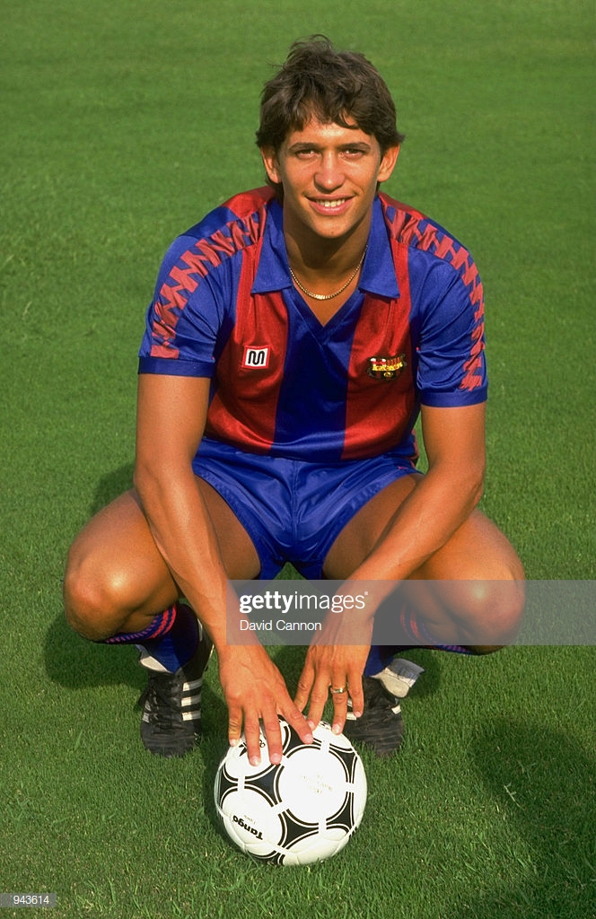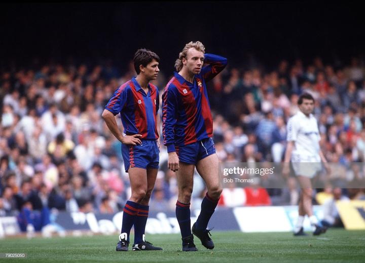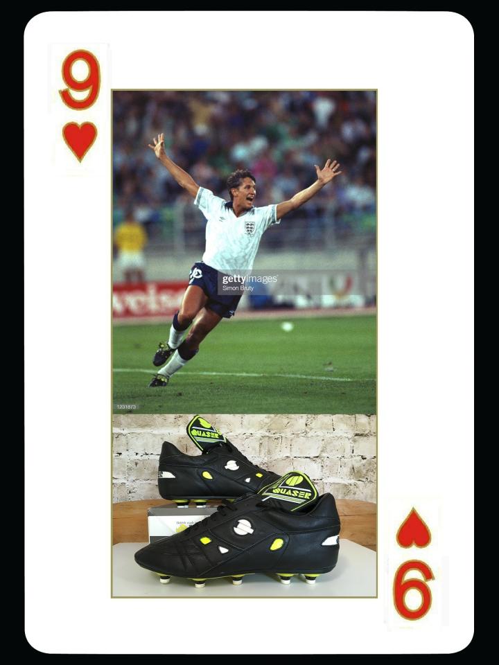 接下来介绍的第二个品牌就比较冷门了,叫quaser,意思是类星体,logo有点像个行星。可以算昙花一现的小作坊,现在早已退出历史舞台。但该品牌的两位代言人在英国足坛绝对是大名鼎鼎的人物。第一位是英格兰的传奇射手, 曾经获得过1986年世界杯金靴的莱因克尔。在获得世界杯金靴后,名声大噪的莱因克尔加盟了西班牙豪门巴塞罗那俱乐部。并且在首个赛季就取得了22个进球,帮助巴萨获得联赛亚军。此时在莱因克尔的老家莱斯特的一家球鞋作坊突发奇想,要赞助莱因克尔球鞋。菜贩子的儿子莱因克尔是个很怀旧懂感恩的人,对自己家乡的一切都充满了感情,所以他爽快地和quaser品牌签约,也让这个名不见经传的小品牌一下子名震英伦。要知道莱茵卡尔当时可是adidas赞助的头牌球星,quaser能虎口拔牙,绝对是莱因克尔给面子。