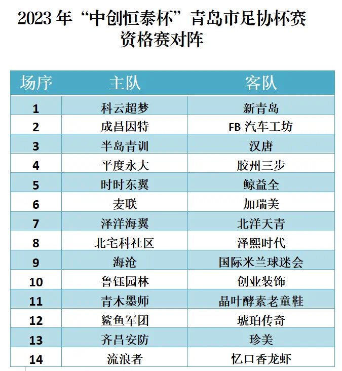 2023年“中创恒泰杯”青岛市足球协会杯赛共有4...