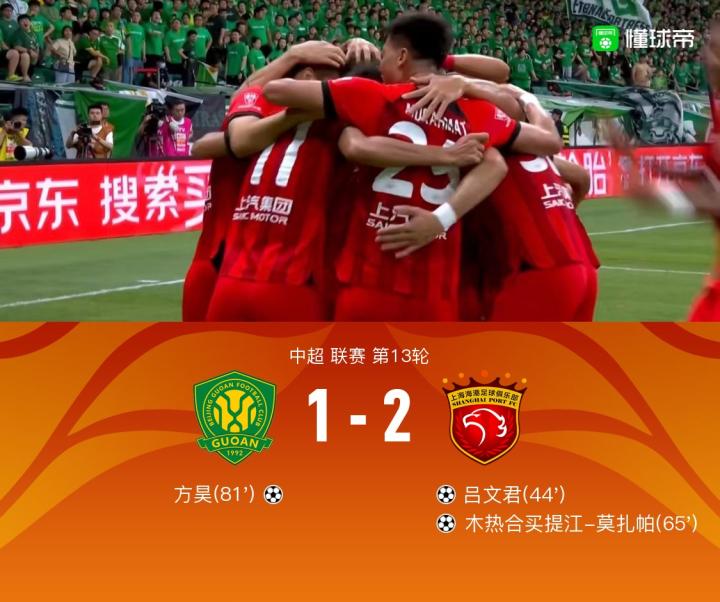 国安1-2海港,买提江、吕文君建功,方昊破门,杨立瑜伤退