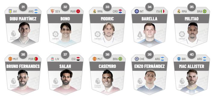 该榜单由115名来自世界各地的前足球运动员、记者、分析师和名人组成的评审团投票评选。