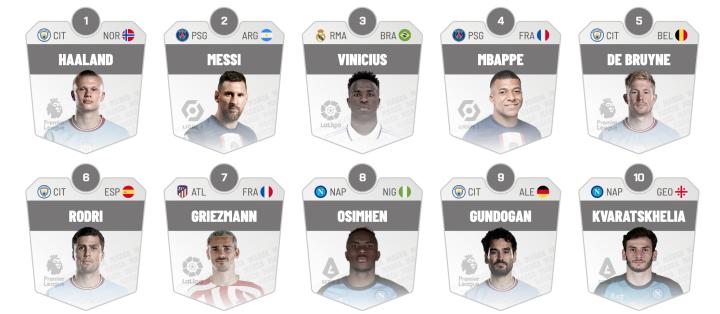 马卡评22-23赛季百大球星:哈兰德居首,梅西、维尼修斯前三