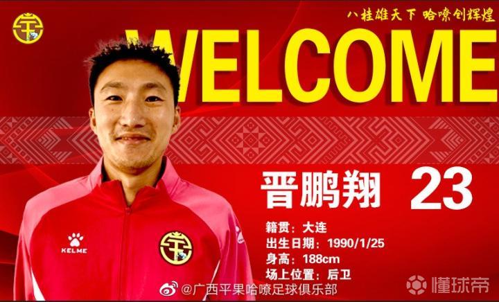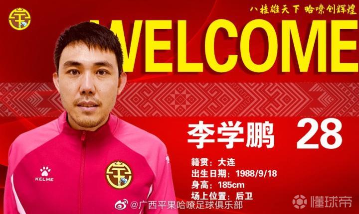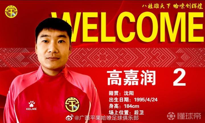 广西平果哈嘹官方宣布,李学鹏、胡人天、高嘉润、晋鹏翔、宋志伟等人加盟球队。