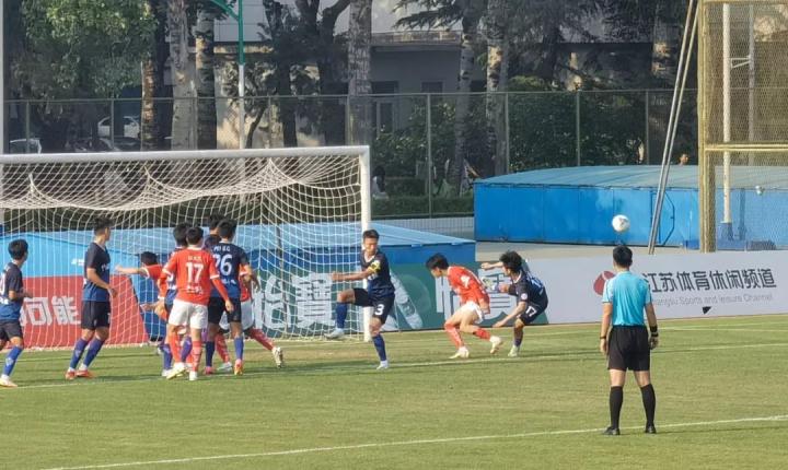 全场补时阶段,海门珂缔缘获得一个禁区前沿任意球,潘驰任意球直接攻门,皮球被对方门将扑出底线。