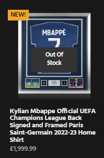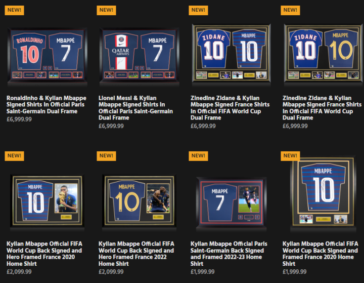 ICONS官方上架姆巴佩国家队/俱乐部签名收藏 张指导聊收藏 张指导聊收藏2023-07-03 15:48近日,ICONS官方上架了几款法国球星姆巴佩签名藏品,包括法国国家队签名球衣、大巴黎签名球衣等。 官网售价在1,999.99 英镑~6,999.99 英镑不等。 根据藏品介绍,这批藏品是姆巴佩在Icons最值得信赖的合作伙伴之一Panini公司于2023年6月19日在巴黎组织和举办的私人签名会上完成的签名。其中一款签名大巴黎22/23主场球衣,目前已售罄!(丁丁) 来源:ICONS展开更多