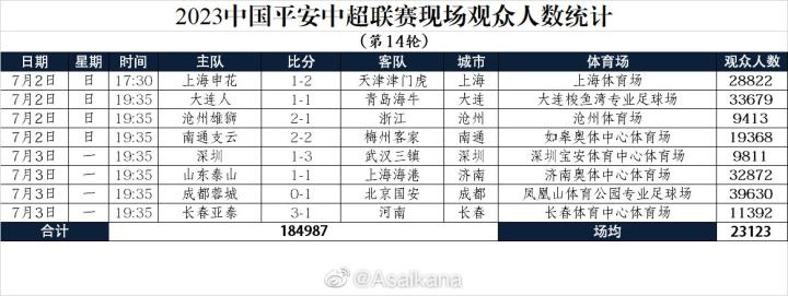 中超第14轮比赛全部结束,据德转管理员@Asaikana 统计,凤凰山、梭鱼湾、济南奥体的上座人数均破3万。