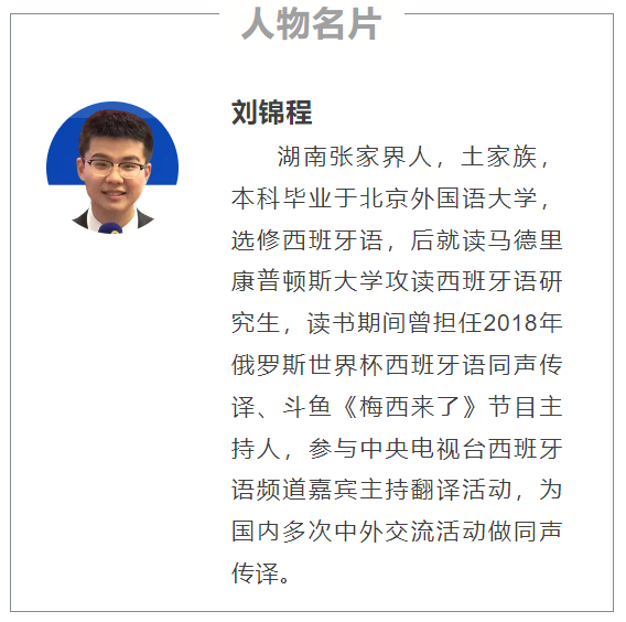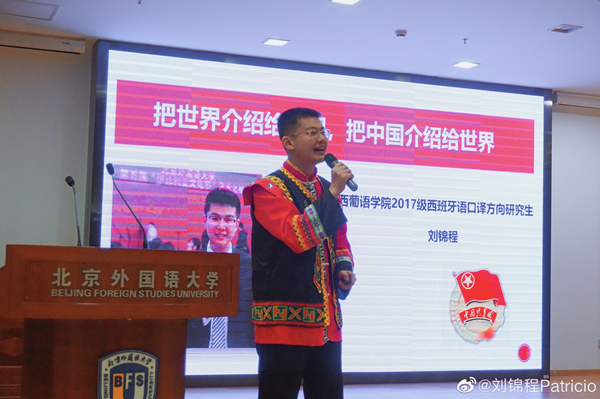 这样,刘锦程考上了北京外国语大学,后选择主修西班牙语。一直品学兼优的他也曾是西葡语系2017级研究生班长;西葡语系研究生会主席;做过中央电视台西班牙语频道嘉宾主持。