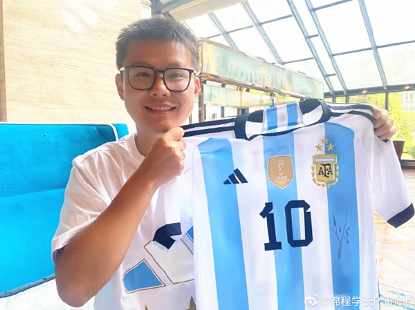 刘锦程展示阿根廷队三星球衣。供图/刘锦程