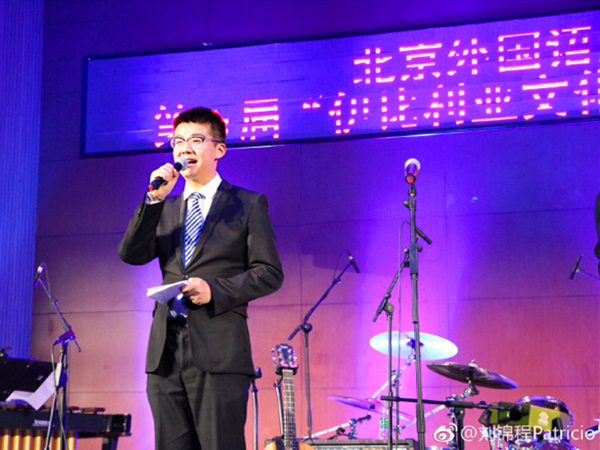 2018年,刘锦程主持北京外国语大学“伊比利亚文化节”艺术之夜活动。供图/刘锦程