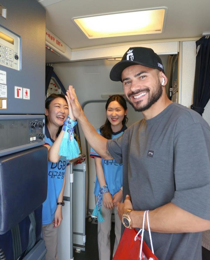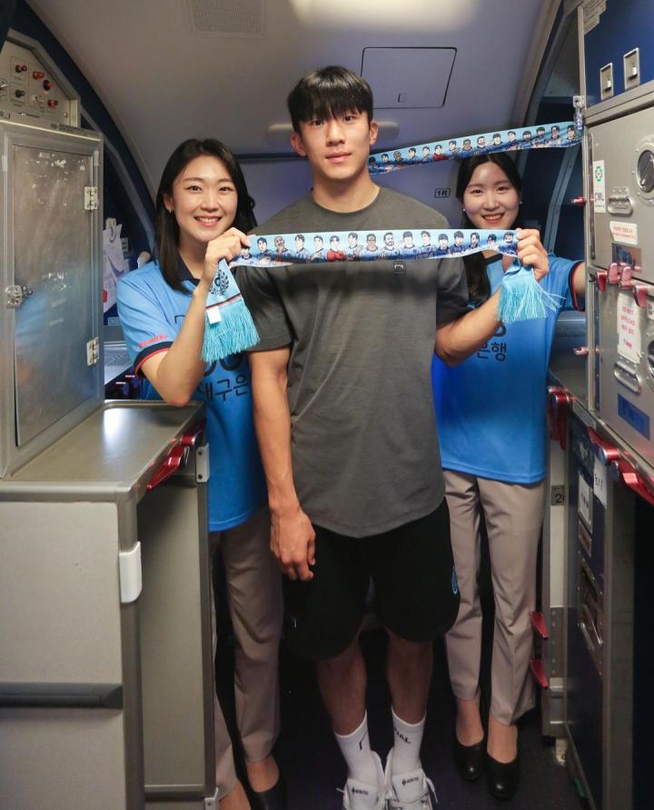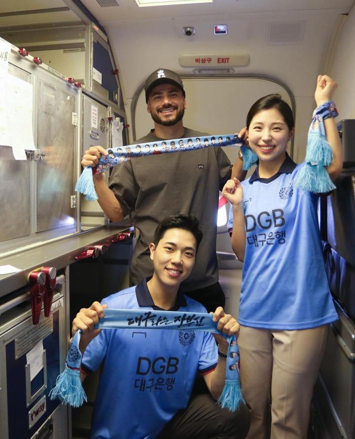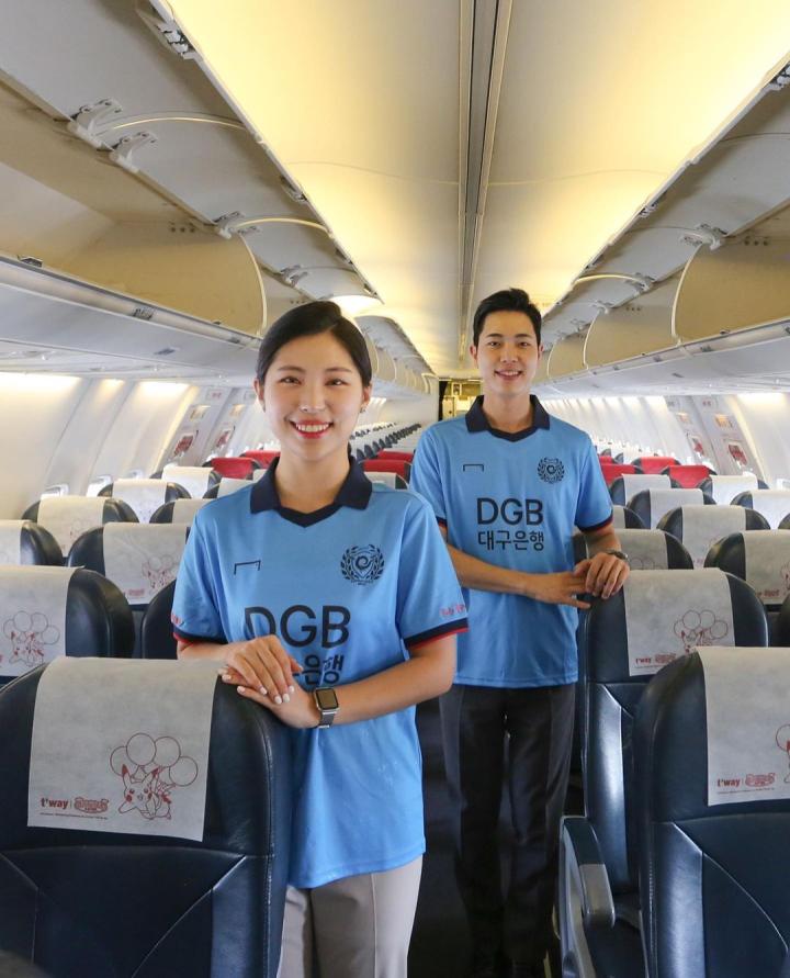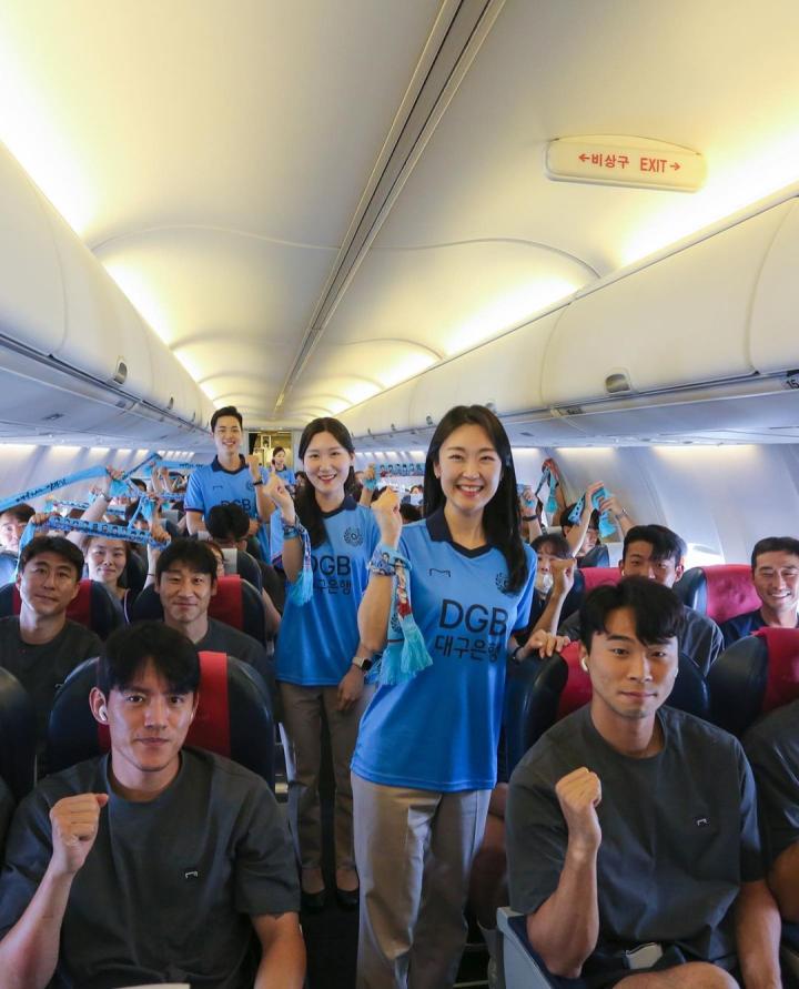 穿着大邱FC球衣的空姐。今天大邱FC客场挑战济州...马君华 @懂球帝2023-07-07 15:22穿着大邱FC球衣的空姐。今天大邱FC客场挑战济州联,球队飞往济州岛的飞机上,空乘人员都穿着大邱球衣。这家航空公司与大邱FC有合作,此前大邱的主场比赛,还有空姐为比赛开球。展开更多