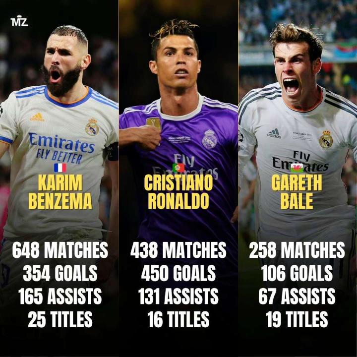 BBC组合是多少皇马球迷的青春,他们在皇马的职业...天天向上Football @懂球帝2023-07-09 15:38BBC组合是多少皇马球迷的青春,他们在皇马的职业生涯数据分别如下。 本泽马:648场比赛354进球165助攻,25个冠军 C罗:438场比赛450进球131助攻,16个冠军 贝尔:258场比赛106进球67助攻,19个冠军展开更多