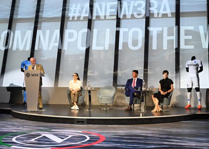 这场特殊的记者会被安排在MSC World Europa的邮轮上进行,除了那不勒斯俱乐部主席奥雷利奥·德劳伦蒂斯亲自出席之外,参与记者会的贵宾还包括那不勒斯俱乐部品牌设计师瓦伦蒂娜·德劳伦蒂斯、MSC Crociere总经理莱昂纳多·马萨、eBay意大利区域总经理爱丽丝·阿夏里。