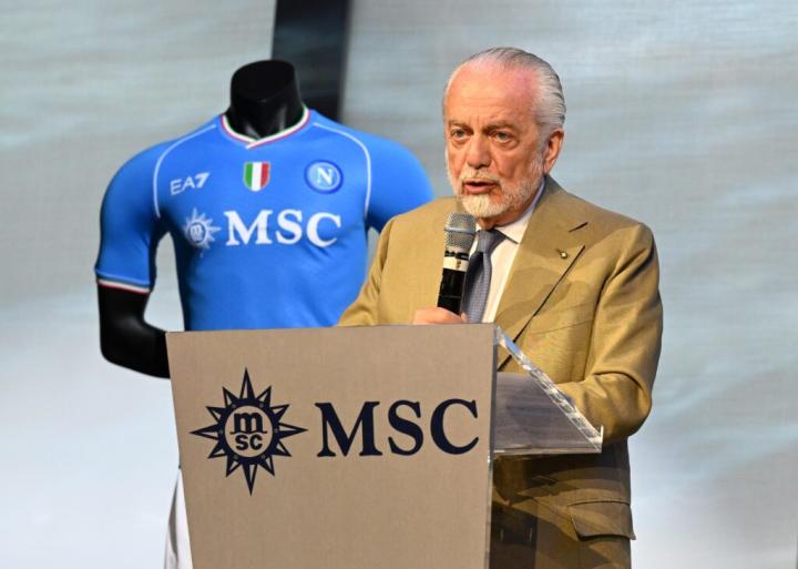 在记者会现场,德劳伦蒂斯首先感谢了俱乐部新主赞助商 MSC Crociere,新赛季他们的品牌形象将出现球衣的正中间位置。