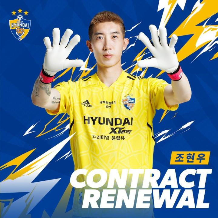 在本轮与仁川联合的K联赛第22轮比赛前,联赛领头羊蔚山现代完成了一件大事!他们与球队的功勋门将赵贤祐续约4年,这意味着赵贤祐在蔚山现代效力的年限很有可能会是8年,成为蔚山现代历史上效力时间最长的门将。2020赛季,与大邱FC合约到期的门将赵贤祐加盟蔚山现代,为球队拿到多项冠军,并且连续三个赛季入选赛季最佳阵容,今年更是成为K1联赛领头羊的头号“守护神”。续约4年,意味着不出意外赵贤祐将“终老蔚山”。虽然没有旅欧很遗憾,但在蔚山如果他过得快乐,也足够了。