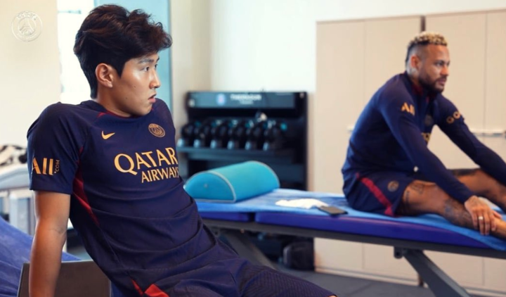 李刚仁巴黎圣日尔曼首训,和内马尔同框啦!